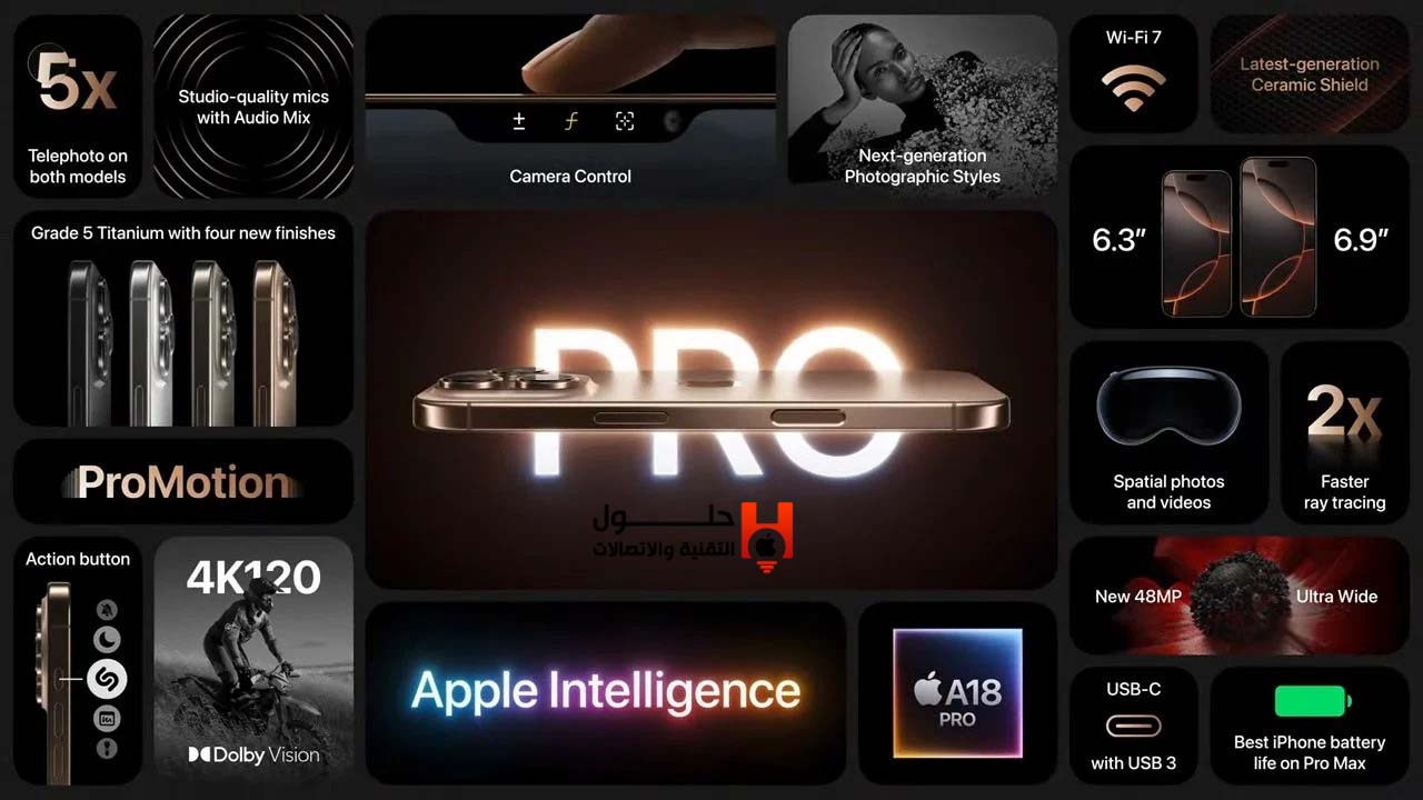 يعمل الهاتف بمعالج Apple A18 Pro الجديد، والذي يوفر أداءً فائق السرعة وكفاءة عالية في استهلاك الطاقة.